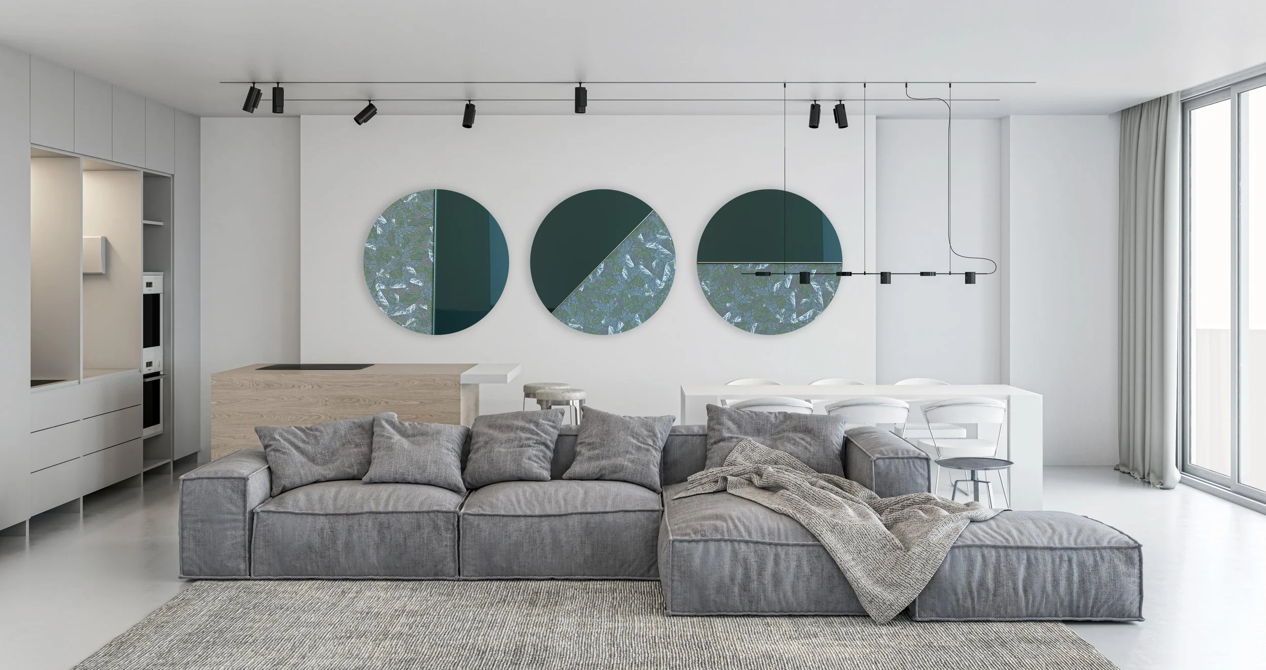 KAIROS, the ancient Greek word for the right, critical, opportune or timely moment, marks our evolution from making to creating, with mirrors that form a perfect circle divided into half, each half a different surface: one is specially finished coloured mirrored glass, and the other a natural surface.